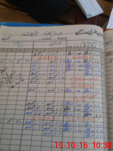 | CNIC | Full Name | Designation | R/C | Absence During Last Calender Month |