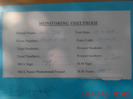 | Certified that this School was Inspected by the Undersigned MEA/DMO Today and the Information Stated Above is as Per Record. | |||||