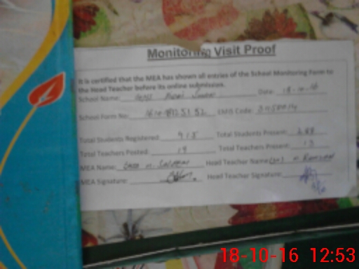 | Attendance Register | Head Teacher | MEA with School | Visit Proof |