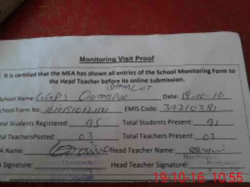 | Attendance Register | Head Teacher | MEA with School | Visit Proof |