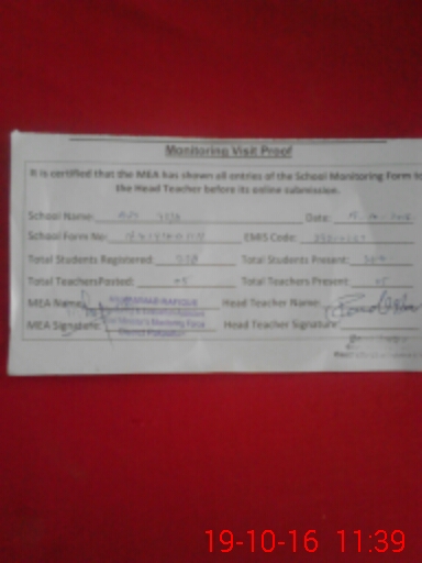 | Certified that this School was Inspected by the Undersigned MEA/DMO Today and the Information Stated Above is as Per Record. | |||||