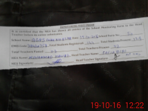 | Certified that this School was Inspected by the Undersigned MEA/DMO Today and the Information Stated Above is as Per Record. | |||||