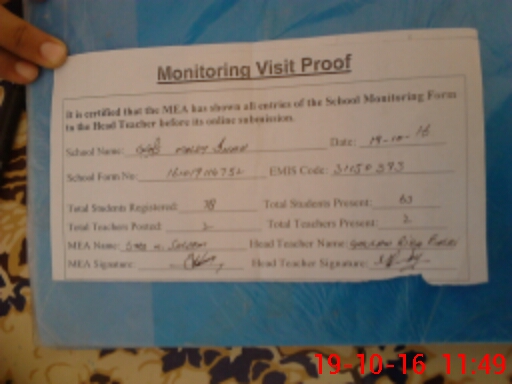 | Certified that this School was Inspected by the Undersigned MEA/DMO Today and the Information Stated Above is as Per Record. | |||||