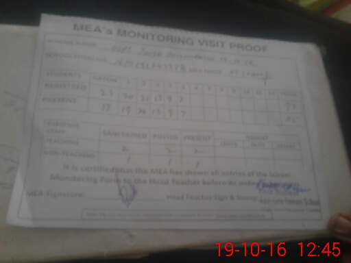 | Attendance Register | Head Teacher | MEA with School | Visit Proof |