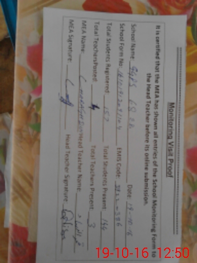 | Certified that this School was Inspected by the Undersigned MEA/DMO Today and the Information Stated Above is as Per Record. | |||||