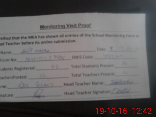 | Attendance Register | Head Teacher | MEA with School | Visit Proof |