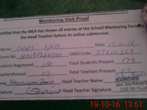 | Certified that this School was Inspected by the Undersigned MEA/DMO Today and the Information Stated Above is as Per Record. | |||||