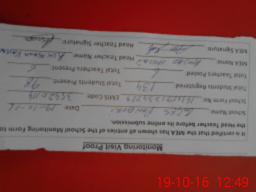 | Attendance Register | Head Teacher | MEA with School | Visit Proof |