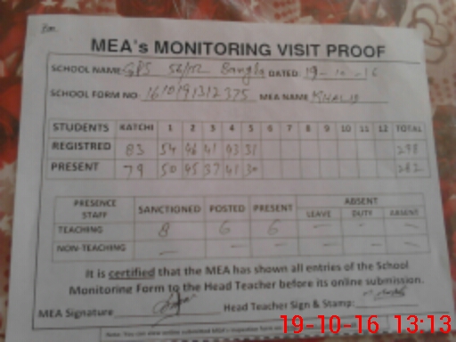 | Attendance Register | Head Teacher | MEA with School | Visit Proof |
