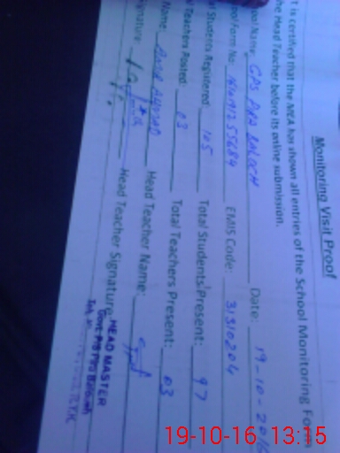 | Certified that this School was Inspected by the Undersigned MEA/DMO Today and the Information Stated Above is as Per Record. | |||||