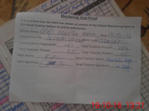 | Attendance Register | Head Teacher | MEA with School | Visit Proof |