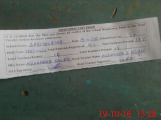 | Attendance Register | Head Teacher | MEA with School | Visit Proof |