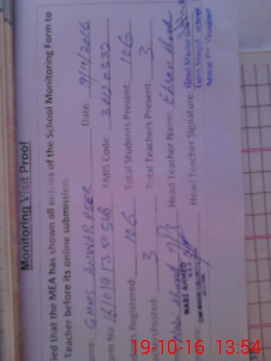 | EMIS Code: 36120332 | Name of School: GPS ANWAR PEER SHUJABAD | |||