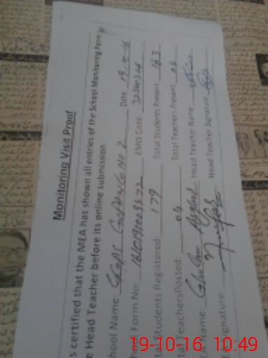 | Certified that this School was Inspected by the Undersigned MEA/DMO Today and the Information Stated Above is as Per Record. | |||||