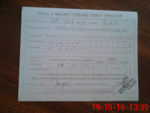 | Attendance Register | Head Teacher | MEA with School | Visit Proof |
