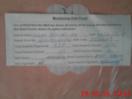 | Attendance Register | Head Teacher | MEA with School | Visit Proof |