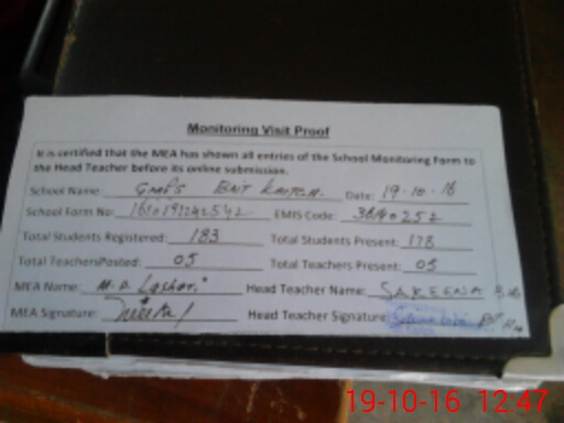 | Certified that this School was Inspected by the Undersigned MEA/DMO Today and the Information Stated Above is as Per Record. | |||||