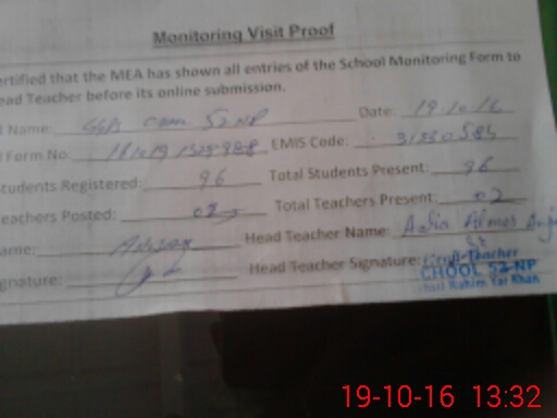 | Certified that this School was Inspected by the Undersigned MEA/DMO Today and the Information Stated Above is as Per Record. | |||||