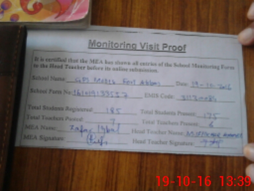 | EMIS Code: 31130084 | Name of School: GPS MODEL FORT ABBAS | |||