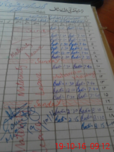 | CNIC | Full Name | Designation | R/C | Absence During Last Calender Month |