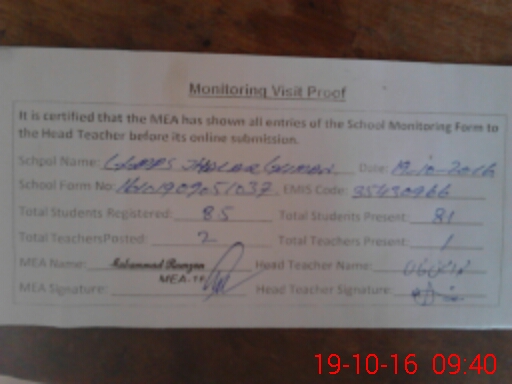 | Certified that this School was Inspected by the Undersigned MEA/DMO Today and the Information Stated Above is as Per Record. | |||||