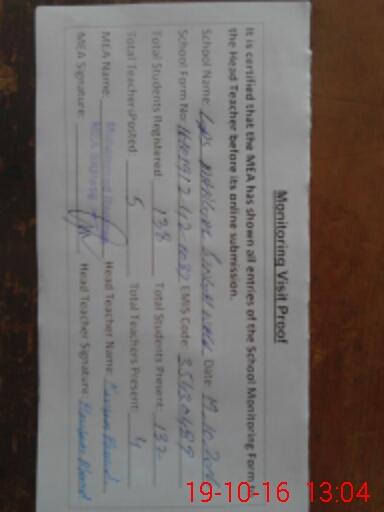 | Certified that this School was Inspected by the Undersigned MEA/DMO Today and the Information Stated Above is as Per Record. | |||||