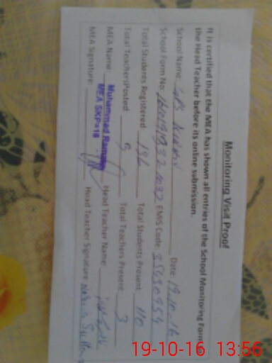 | Certified that this School was Inspected by the Undersigned MEA/DMO Today and the Information Stated Above is as Per Record. | |||||