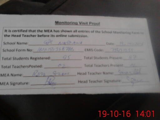 | Certified that this School was Inspected by the Undersigned MEA/DMO Today and the Information Stated Above is as Per Record. | |||||