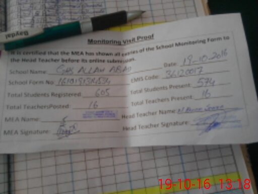 | Attendance Register | Head Teacher | MEA with School | Visit Proof |