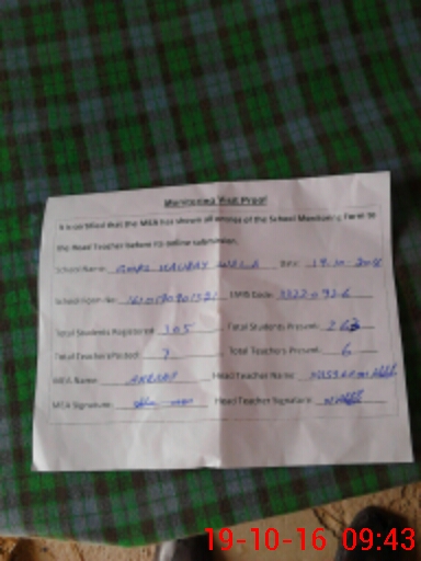 | Attendance Register | Head Teacher | MEA with School | Visit Proof |