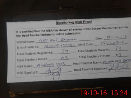 | Attendance Register | Head Teacher | MEA with School | Visit Proof |
