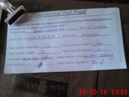 | Certified that this School was Inspected by the Undersigned MEA/DMO Today and the Information Stated Above is as Per Record. | |||||