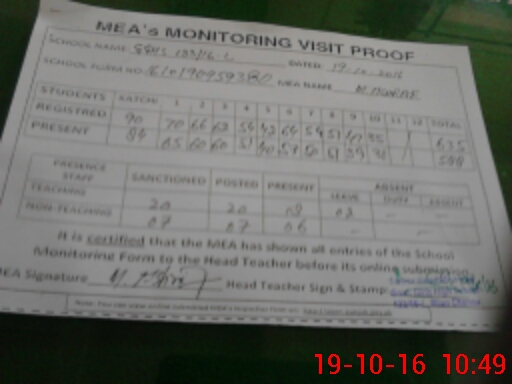 | Attendance Register | Head Teacher | MEA with School | Visit Proof |