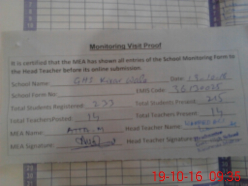 | EMIS Code: 36130025 | Name of School: GHS KIRAR WALA MULTAN | |||