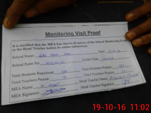 | Attendance Register | Head Teacher | MEA with School | Visit Proof |