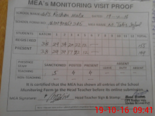 | Certified that this School was Inspected by the Undersigned MEA/DMO Today and the Information Stated Above is as Per Record. | |||||