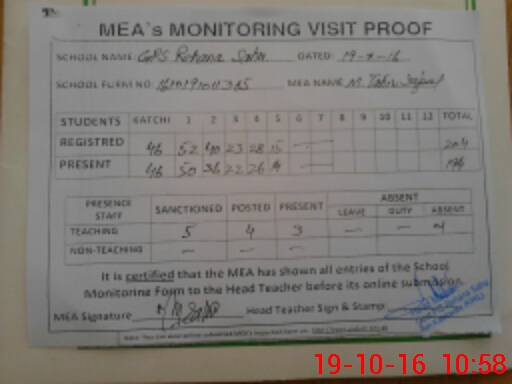 | Certified that this School was Inspected by the Undersigned MEA/DMO Today and the Information Stated Above is as Per Record. | |||||