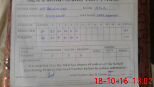 | Certified that this School was Inspected by the Undersigned MEA/DMO Today and the Information Stated Above is as Per Record. | |||||