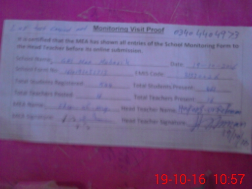 | Certified that this School was Inspected by the Undersigned MEA/DMO Today and the Information Stated Above is as Per Record. | |||||