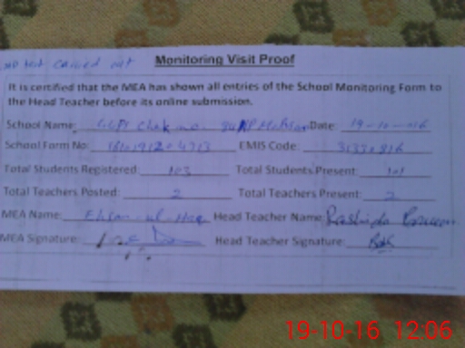 | EMIS Code: 31330816 | Name of School: GGPS CHAK 84/NP MOLVIAN | |||