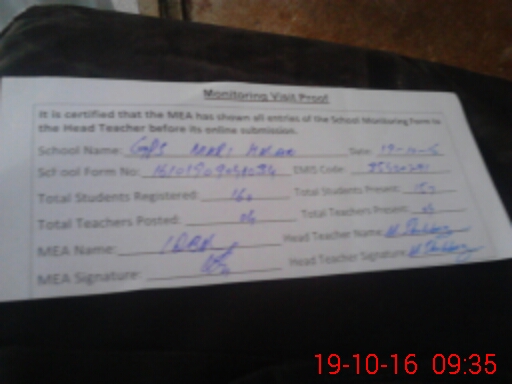 | Certified that this School was Inspected by the Undersigned MEA/DMO Today and the Information Stated Above is as Per Record. | |||||