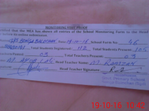 | EMIS Code: 38430141 | Name of School: GPS BONGA BALOCHAN | |||