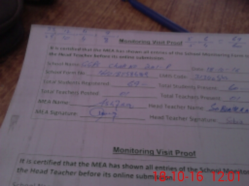 | Attendance Register | Head Teacher | MEA with School | Visit Proof |
