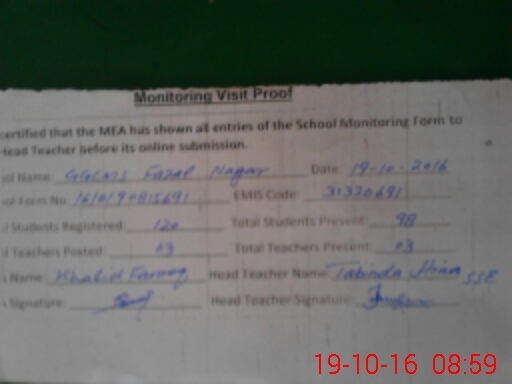 | EMIS Code: 31320691 | Name of School: GGCMS FAZAL NAGAR | |||