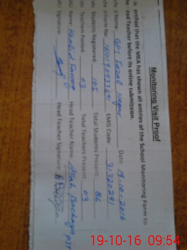 | EMIS Code: 31320291 | Name of School: GPS FAZAL NAGAR | |||