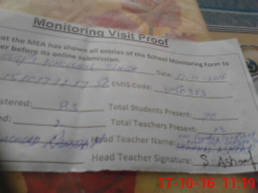 | Attendance Register | Head Teacher | MEA with School | Visit Proof |