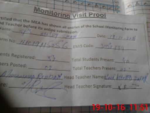 | Certified that this School was Inspected by the Undersigned MEA/DMO Today and the Information Stated Above is as Per Record. | |||||