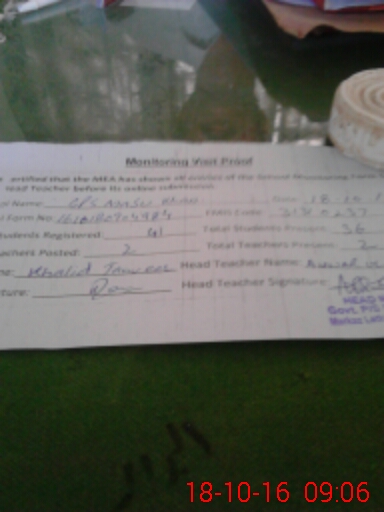 | Certified that this School was Inspected by the Undersigned MEA/DMO Today and the Information Stated Above is as Per Record. | |||||