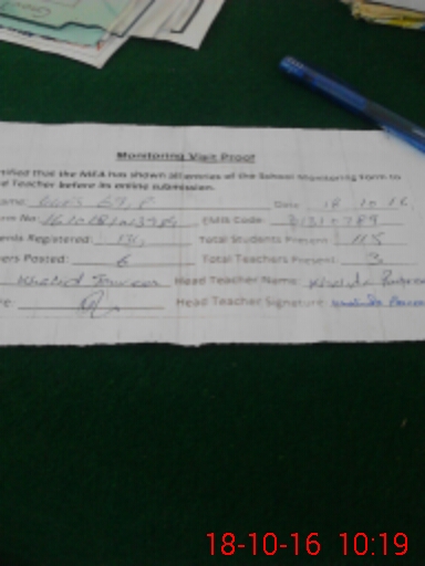 | Attendance Register | Head Teacher | MEA with School | Visit Proof |