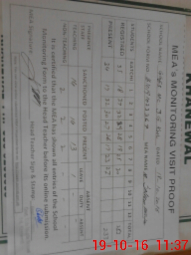 | Certified that this School was Inspected by the Undersigned MEA/DMO Today and the Information Stated Above is as Per Record. | |||||
